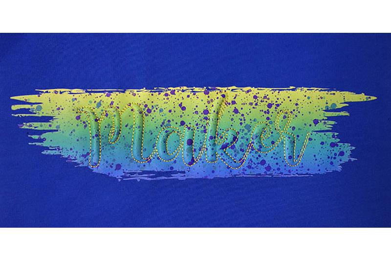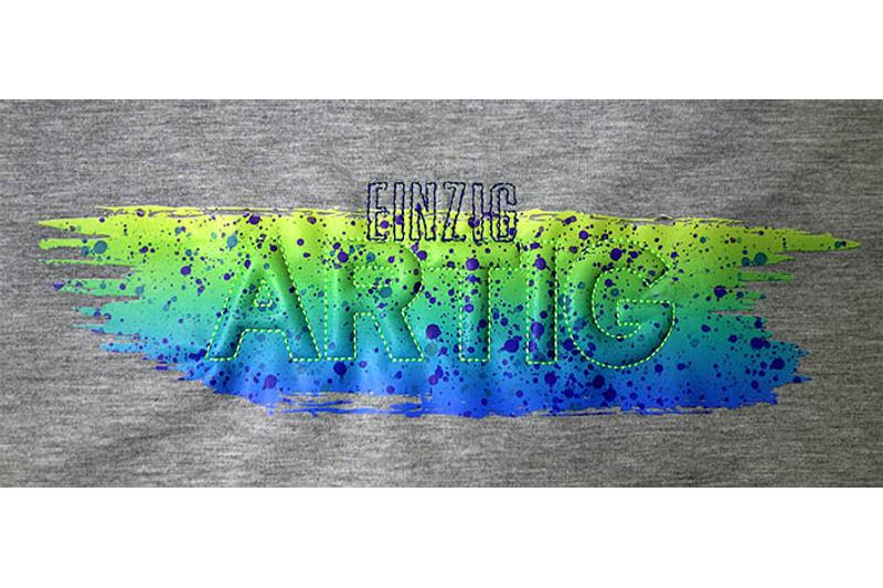 Übertrage sie auf Deine Shirts, Hoodies etc. und sticke einen coolen Schriftzug drüber. Geeignet sind lockere Stickmuster, aber keine dichten Satinstiche.