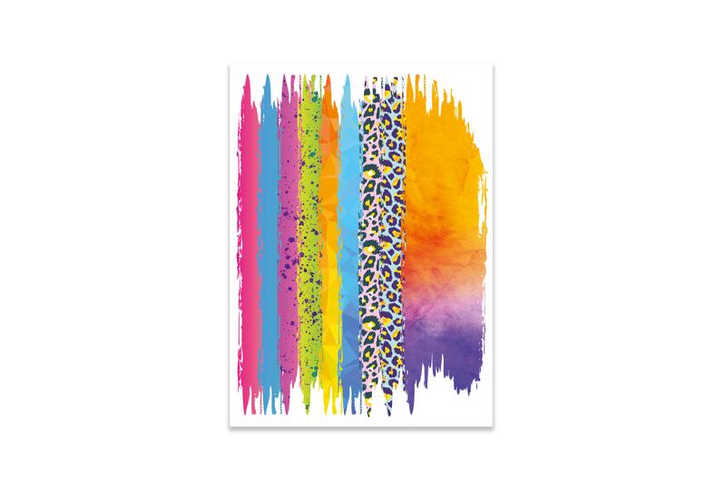Diese coolen Thermotransfer-Pinselstriche können auf viele hitzebeständige Oberflächen wie Baumwolle, Polyester, Leder, Holz, Canvas u.v.m. übertragen werden.