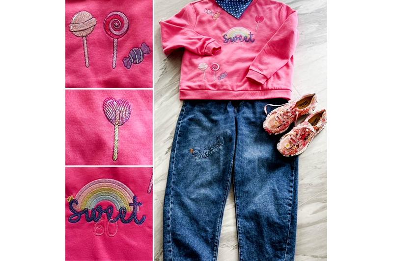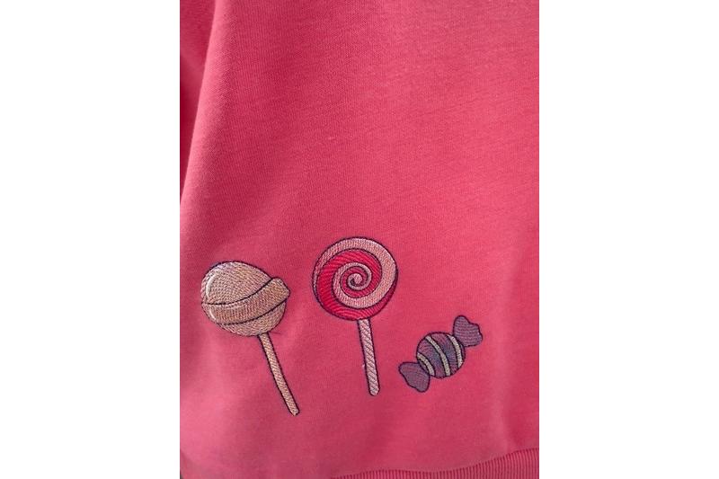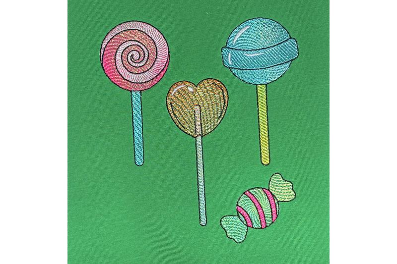 4 Süssigkeiten für den 10 x 10 cm Stickrahmen: 3 Lillis und 1 Bonbon